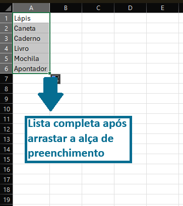 👉 Resultado: o Excel continuará a sequência (3, 4, 5...).